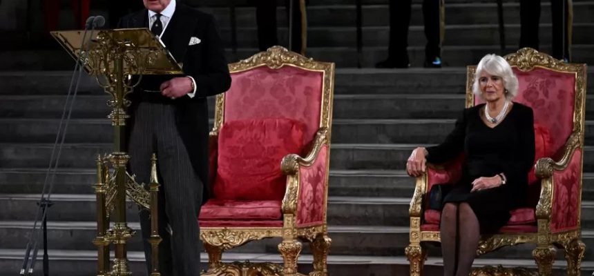 Em uma cerimônia no Westminster Hall, o prédio mais antigo do Parlamento, em Londres, Charles homenageou a rainha e prometeu defender o princípio do governo constitucional.