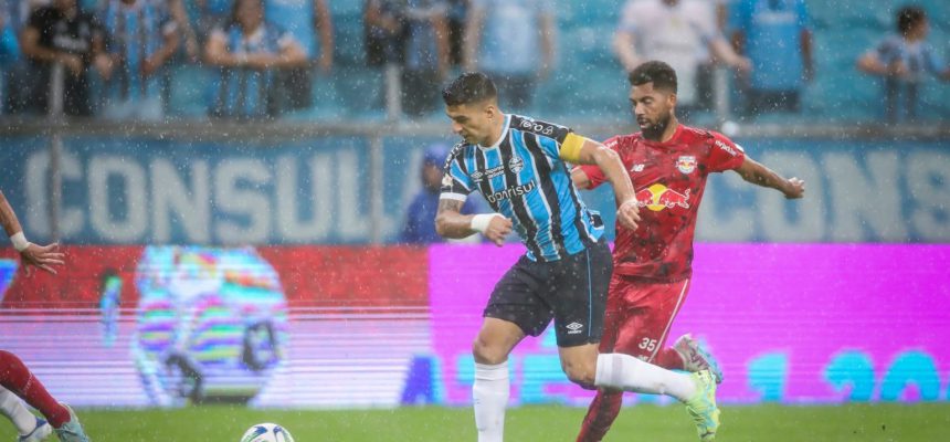 Sob muita chuva, o Grêmio recebeu na noite desse domingo (7) o Bragantino em seu primeiro jogo em casa nesta edição do Campeonato Brasileiro. O Tricolor, que começou ganhando e viu Suárez voltar a marcar, sofreu o empate no final do segundo tempo. O 3 a 3 do placar manteve o time gaúcho na 7ª colocação, com 7 pontos. O próximo compromisso na competição será nesta quarta (10) contra o Palmeiras, em São Paulo.