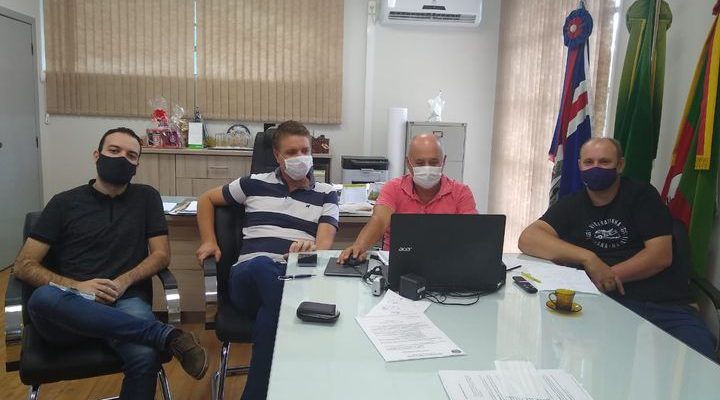 Na manhã desta quinta-feira (11), Prefeito Clenio Boeira, Vice Tiago Szortyka, Procurador Anderson Barbosa Pavão Wyse e o Diretor de Meio Ambiente Marcelo Bednarski participaram de uma reunião virtual com a CORSAN.