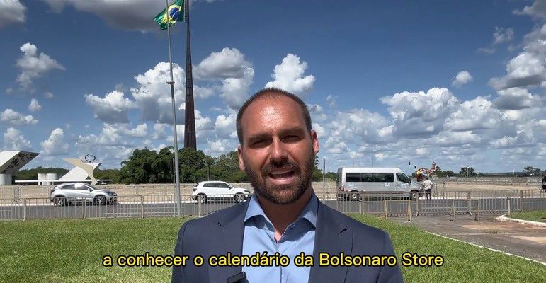“Te convido a conhecer o calendário da Bolsonaro Store. Além de fotos exclusivas e de qualidade, você vai poder relembrar as diversas vitórias do presidente Jair Bolsonaro“, afirma o deputado em um vídeo gravado na praça dos Três Poderes, em Brasília.