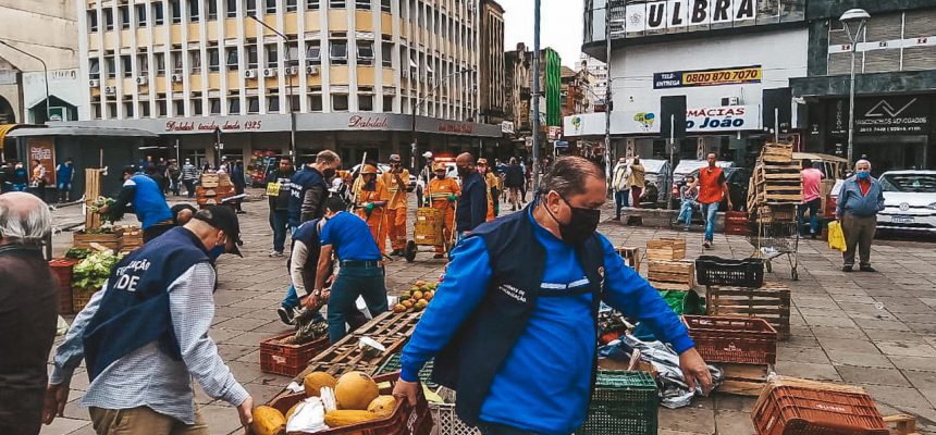 Fiscais da prefeitura de Porto Alegre apreenderam, na manhã desta sexta-feira (11), duas toneladas de frutas e verduras sem procedência durante uma operação contra o comércio ambulante irregular no Centro Histórico da Capital.