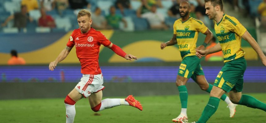A oportunidade fez o Cuiabá crescer no jogo. Na base da pressão, a equipe da casa fez a bola rondar a área colorada. Mas as duas conclusões bateram em jogadores do Inter, uma em Bustos, outra em Igor Gomes.