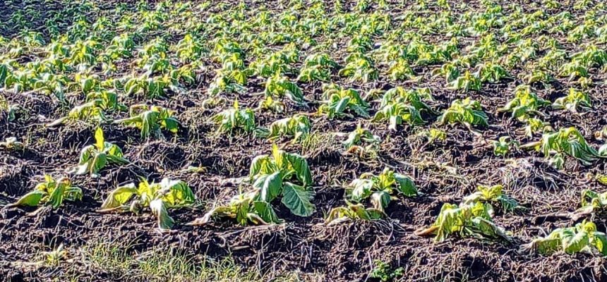 Fonte: Foto: Internauta/Clic Camaquã. Lavoura de fumo afetada pela geada, Pablo Bierhals, Redação/Clic Camaquã