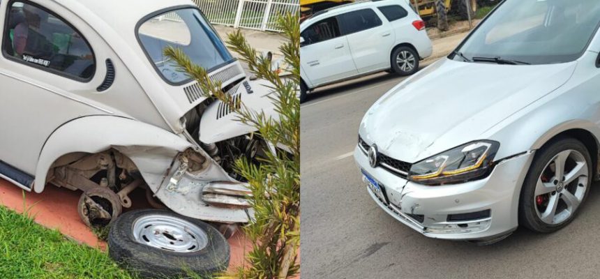Fusca perde a roda e invade ciclovia em acidente de trânsito na avenida José Loureiro da Silva