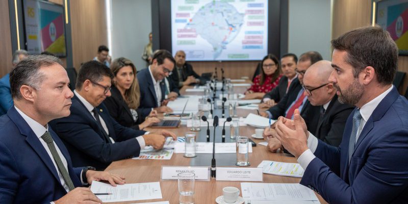 Durante reunião realizada nesta terça-feira (11) em Brasília com o ministro dos Transportes, Renan Filho, o governador Eduardo Leite entregou uma lista com obras de infraestrutura rodoviária priorizadas pelo Executivo do Rio Grande do Sul. O documento foi produzido em conjunto com a bancada gaúcha da Câmara dos Deputados.