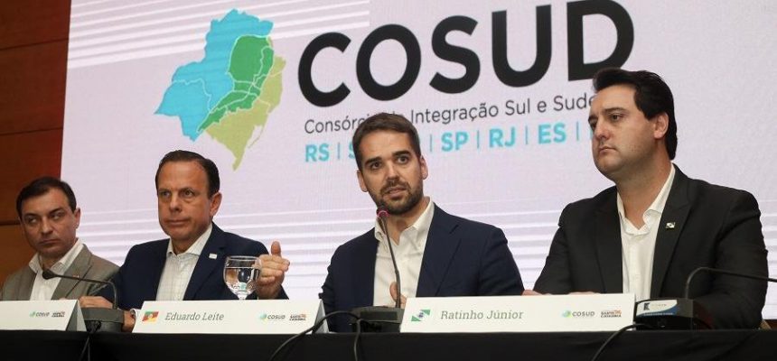 Os sete governadores que integram o Consórcio de Integração Sul e Sudeste (Cosud) pediram neste sábado que os recursos da cessão onerosa do pré-sal sejam distribuídos aos Estados e municípios ainda em 2019. A medida consta nas conclusões da Carta de Florianópolis, assinada pelos sete chefes de Executivo ao final do evento realizado na capital catarinense. O próximo encontro do Cosud será em Foz do Iguaçu, no Paraná, em janeiro de 2020.