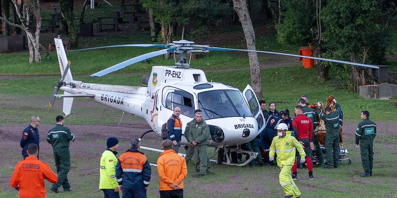 Além dos três helicópteros do governo do Estado, as operações contam com o apoio de aeronaves do Corpo de Bombeiros Militar de Santa Catarina (1), do Exército (1), da Força Aérea Brasileira (2), da Marinha (1), da Polícia Militar de Santa Catarina (1) e da Polícia Rodoviária Federal (1).Com isso, o total de helicópteros empregados nos resgates chega a dez.