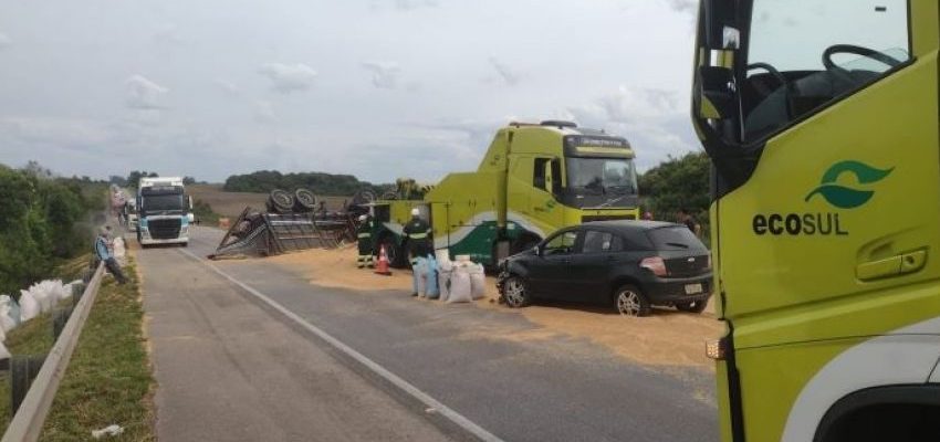 De acordo com informações da Ecosul, concessionária da rodovia, uma Fiat Strada colidiu frontalmente com a carreta. Com o impacto da colisão, a carreta tombou e derramou a carga sobre a pista. Em seguida, um Chevrolet Agile perdeu o controle e bateu contra a carreta tombada.