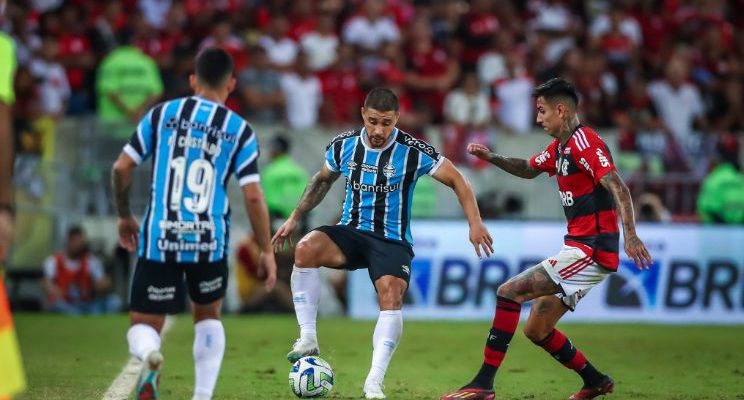 No Maracanã, o Grêmio foi goleado pelo Flamengo neste domingo (11), em jogo válido pela 10ª rodada do Campeonato Brasileiro. Após duas vitórias seguidas na competição, o Tricolor sofreu o revés. Os adversários venceram a partida pelo placar de 3 a 0. Everton, Pedro e Bruno Henrique marcaram para a equipe carioca. Com o resultado, o time gaúcho sai do G-4 e assume a sexta colocação, com 17 pontos.