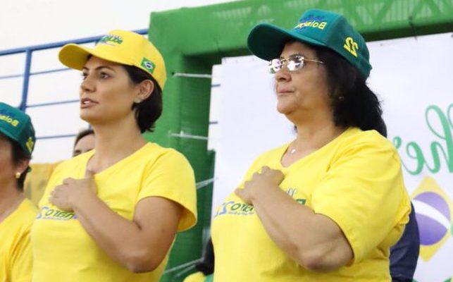 Michelle e Damares participaram de eventos de campanhas em igrejas na Praia de Iracema e no Bairro Sapiranga. Bolsonaro cumpre neste sábado agenda na capital cearense, em um comício no Polo de Lazer, acompanhado de políticos locais.