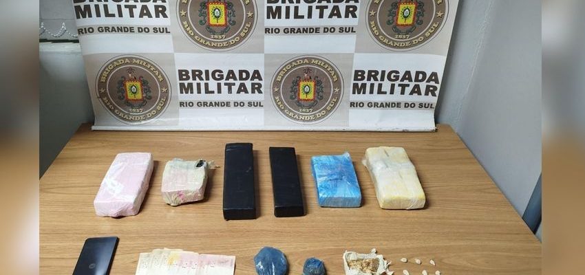 Junto ao homem, de 34 anos, foram encontrados aproximadamente 1,7 kg de crack, 1,9 kg de cacaína, 1,4 kg de maconha, dinheiro e celular.