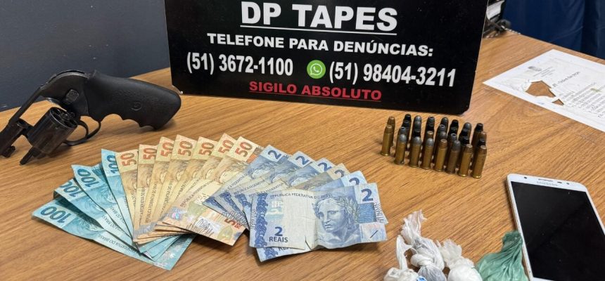 O suspeito, segundo a Polícia Civil, foi flagrado com porções de maconha e cocaína, além de um revólver, diversas munições e R$ 762,00, em notas de 100, 50 e 2 reais.
