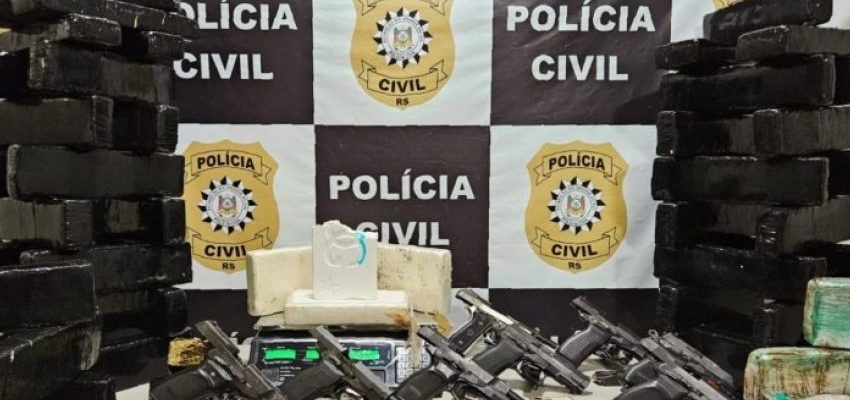 A Polícia Civil (PC), por meio da 2ª Delegacia de Polícia de Gravataí, em ação investigativa realizada na noite da última sexta-feira (3), prendeu em flagrante um homem de 41 anos de idade, pelos delitos de tráfico de drogas, guarda de instrumentos destinados à preparação de drogas para venda, posse ilegal de arma de fogo de uso restrito e posse ilegal de arma de fogo com numeração raspada.