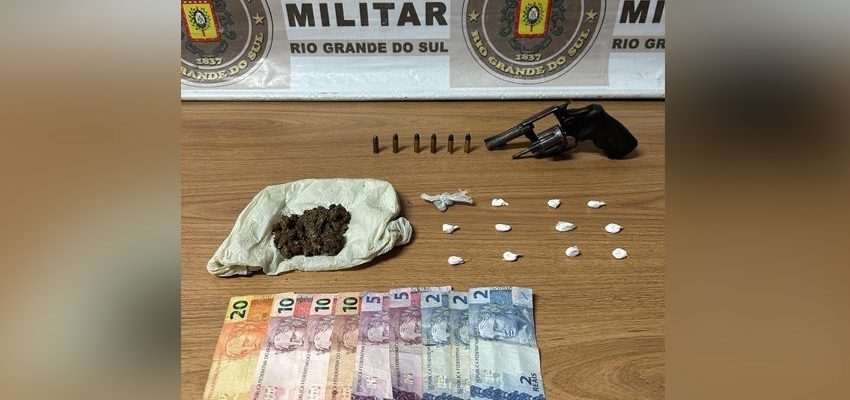Brigada Militar (BM) prendeu em flagrante, nessa quarta-feira (30), um homem por porte ilegal de arma de fogo e tráfico de drogas em Camaquã. A ação aconteceu no bairro Bom Sucesso.