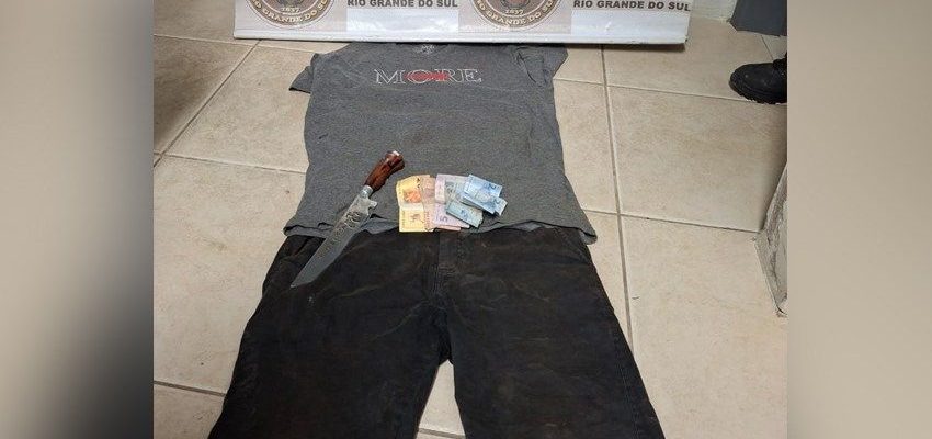 Durante a abordagem, foi apreendido uma faca, um celular, uma quantia de R$ 41 em dinheiro e as roupas usadas no crime.