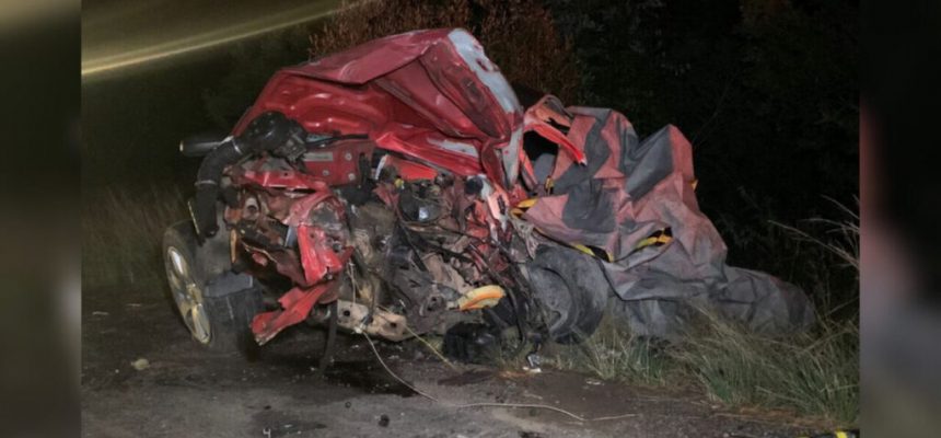 O automóvel teve a frente completamente destruída e destroços de ambos os veículos ficaram espalhados pela pista.