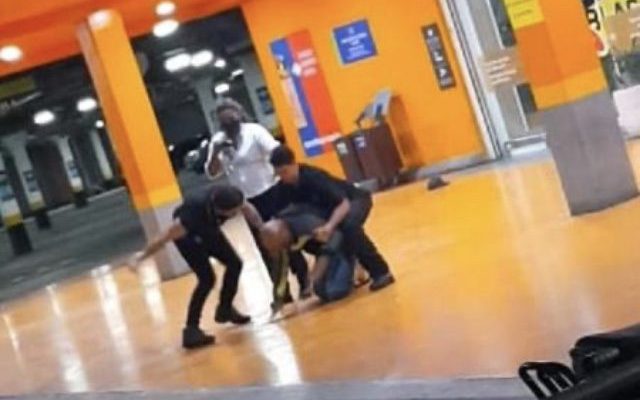 Nas imagens das câmeras de vigilância, é possível ver o homem, que é negro, sendo imobilizado e levando vários socos de dois seguranças. Os agressores foram presos. Um deles é policial militar temporário.