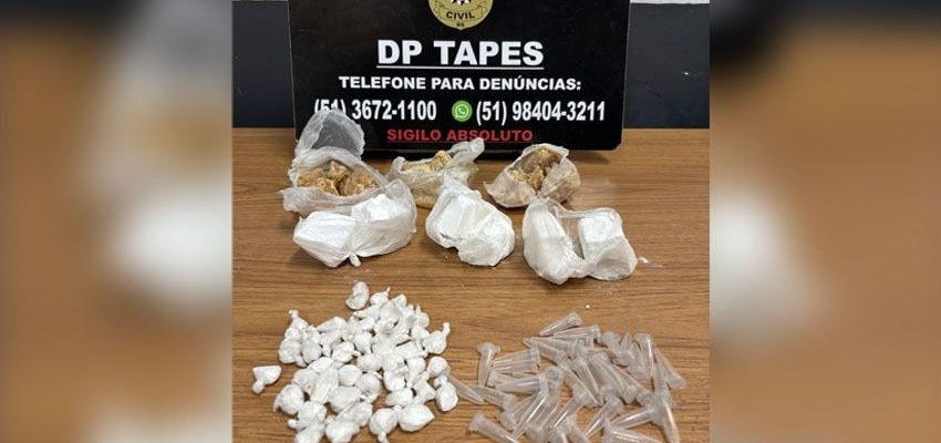 Agentes da Delegacia de Polícia de Tapes realizaram, após receberem denúncias anônimas, investigações contra um homem que estaria armazenando drogas. O alvo seria responsável por fracionar as drogas e entregar os entorpecentes já embalados aos traficantes.