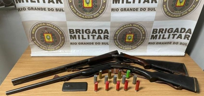 Segundo a BM, foram presos um homem de 49 anos e um idoso de 69. A ação aconteceu na localidade da Bandeirinha. Foram apreendidas duas espingardas, uma calibre 12 e outra de calibre 16. Os policiais militares também apreenderam munições.