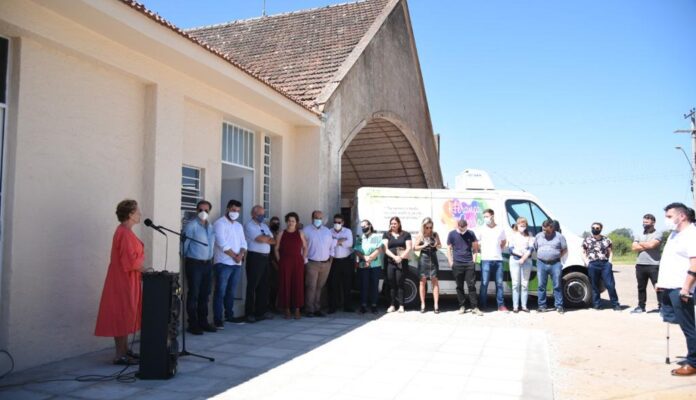 Prefeito Benito Paschoal, Paula e Ondina Becker no ato simbólico de inauguração