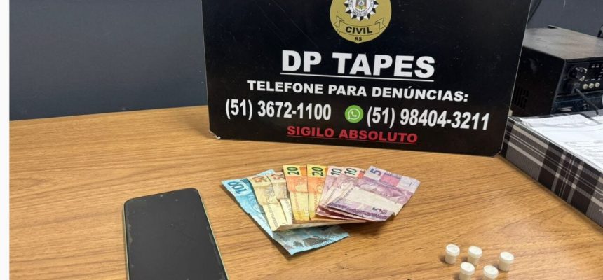 Um jovem de 17 anos foi apreendido em flagrante na tarde de segunda-feira (30), em Tapes, por ato infracional análogo ao tráfico de drogas. A apreensão do adolescente foi realizada pela Polícia Civil, através da Delegacia de Tapes.