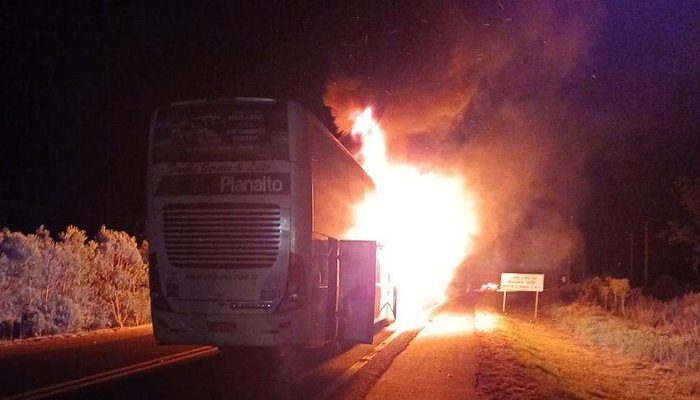 Um ônibus colidiu contra uma moto e pegou fogo na RS-287, em Candelária, no Vale do Rio Pardo, na noite deste sábado (24). Conforme a concessionária que administra a estrada, o fato ocorreu no km 141 da rodovia. O condutor da moto, um rapaz de 18 anos, morreu.