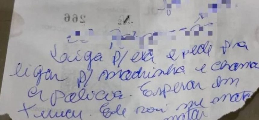 A vítima, uma mulher de 32 anos, conseguiu pedir ajuda de forma inusitada: escreveu um apelo à mão no verso de uma nota fiscal. A mensagem dizia: “Ele vai me matar”. O bilhete foi entregue a um frentista de um posto de combustíveis, que imediatamente acionou a polícia.