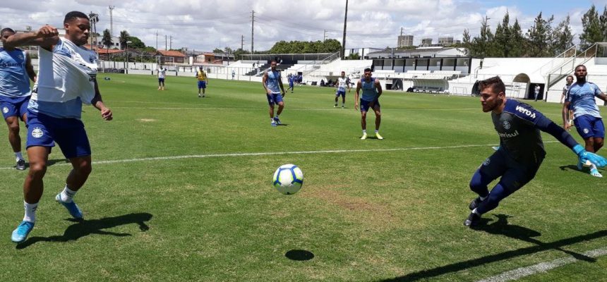 O Grêmio encerrou na manhã desta sexta-feira a preparação para enfrentar o Fortaleza, pela 27ª rodada do Campeonato Brasileiro, com um trabalho semiaberto no Estádio Carlos de Alencar Pinto, sede do Ceará. Na parte fechada da atividade, Renato Portaluppi definiu o time que irá enfrentar o Leão do Pici, no sábado. A tendência é um time totalmente reserva. Na aberta, os jogadores realizavam um recreativo sem a presença de Luan e Pedro Geromel.