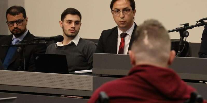 Para a acusação, o réu agiu com dolo eventual, pois ao atingir com violência partes sensíveis do corpo da vítima, como a cabeça, assumiu e aceitou o risco de matar. O promotor responsável sublinhou: