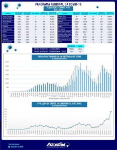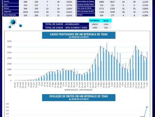 *142 óbitos nos últimos 7 dias. Infelizmente, alcançamos mais um triste recorde de vidas perdidas na região* (Desse total de 142 óbitos, 47 foram reclassificados no último dia 3, em Pelotas, conforme um trabalho de investigação de óbitos ocorrido no município durante os últimos meses)