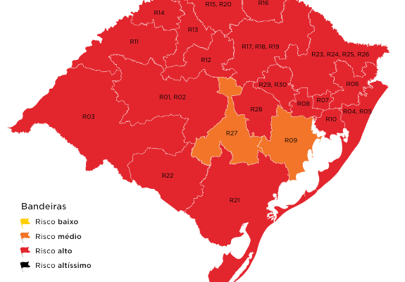 O Governo do Rio Grande do Sul anunciou, nesta segunda-feira, que deixará 19 regiões em bandeira vermelha no mapa definitivo da 30ª rodada do Distanciamento Controlado. As áreas de Cachoeira do Sul e de Guaíba tiveram os seus pedidos de reconsideração de bandeiras atendidos pelo Gabinete de Crise e ficarão na bandeira laranja nesta semana.