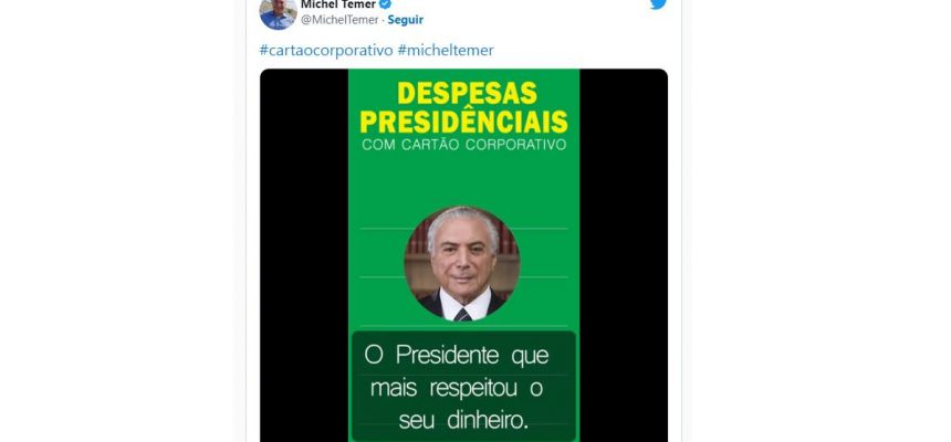 A montagem compara gastos dos últimos presidentes da República com o cartão corporativo. Temer seria o mandatário com menor valor somado.