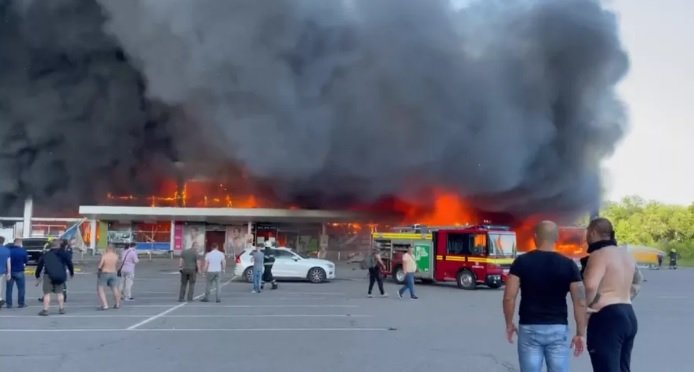 “Os ocupantes dispararam um míssil contra um shopping onde havia mais de mil civis. O shopping está em chamas e as equipes de resgate combatem o fogo. O número de vítimas é impossível de imaginar”, postou o presidente, junto com um vídeo. “É inútil esperar decência e humanidade da Rússia.