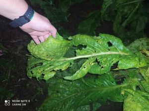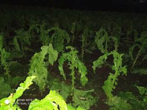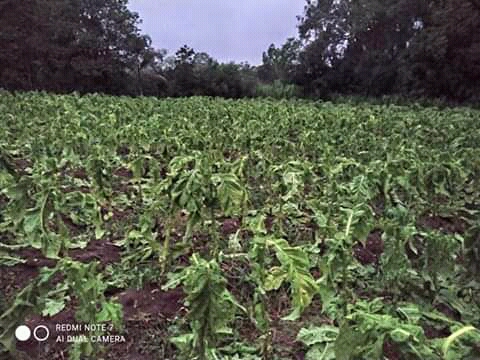 A chuva do final da tarde de ontem terça- feira dia (23) de Fevereiro de 2021, veio acompanhada de granizo na localidade e acabou danificando sua produção de tabaco(Fumo) e sua produção de milho.