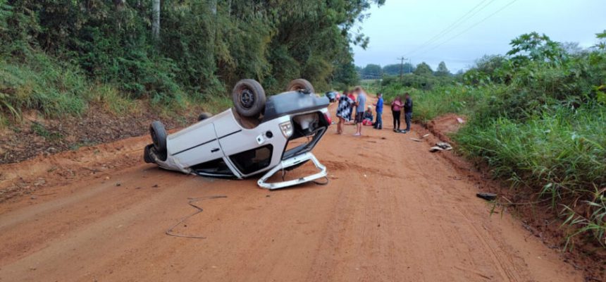 Conforme informações, o motorista do carro modelo Gol Volkswagen, perdeu o controle e acabou capotando em curva da estrada.