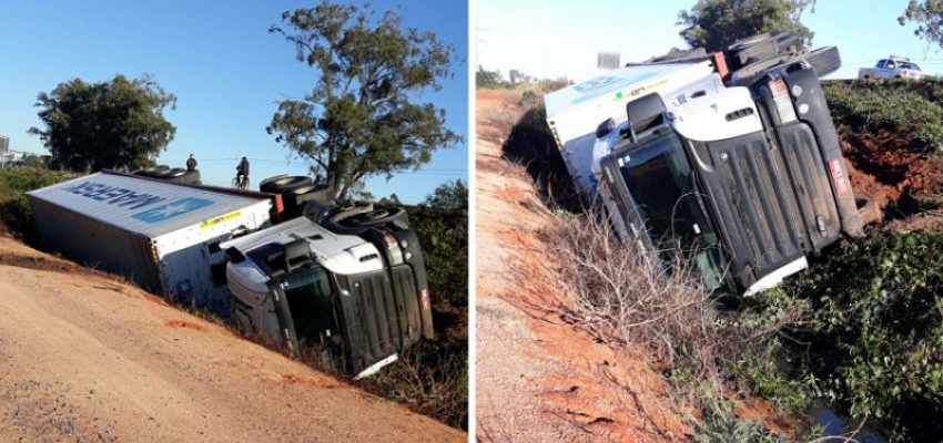 Ainda não se sabe o que ocasionou o acidente. Após perder o controle da direção, a carreta que carregava um conteiner acabou tombando para dentro de um valo, à margem da rodovia.