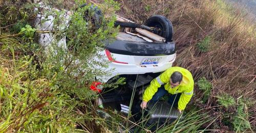 Na manhã desta sexta-feira (15), um veículo que transitava na RSC-471 saiu da pista e capotou. As condições climáticas estavam desfavoráveis para o deslocamento.