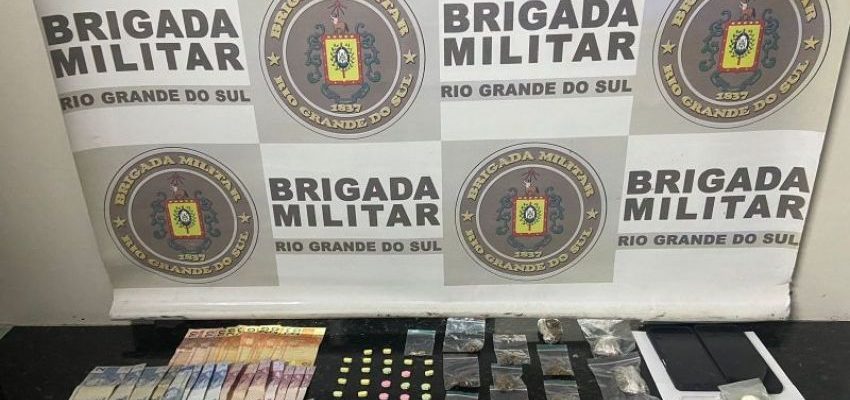 Durante patrulhamento, os policiais realizaram a abordagem e localizaram com a mulher nove invólucros de skunk, pesando 11 gramas; quatro invólucros de maconha, pesando 53 gramas; três invólucros de MDMA, pesando 2,9 gramas; dez buchas de cocaína, pesando 15 gramas; além de 34 comprimidos de droga sintética, totalizando 23 gramas. Também foram apreendidos uma balança de precisão, R$ 255,00 em dinheiro e dois aparelhos celulares.