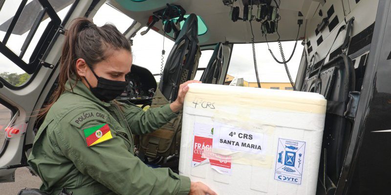 Um avião da Brigada Militar e um helicóptero da Polícia Civil deixaram as cargas nos municípios de Caxias do Sul, Erechim, Palmeira das Missões, Santo Ângelo, Bagé, Pelotas e Santa Maria.