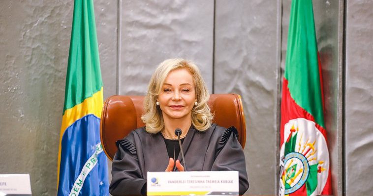 A desembargadora Vanderlei Teresinha Tremeia Kubiak tomou posse, na segunda-feira (29), como presidente do Tribunal Regional Eleitoral do Estado (TRE-RS) para o biênio 2023/2024. Ela assume o posto no lugar do desembargador Francisco José Moesch. Na ocasião, também tomou posse o desembargador Voltaire de Lima Moraes, como vice-presidente e corregedor da Corte.