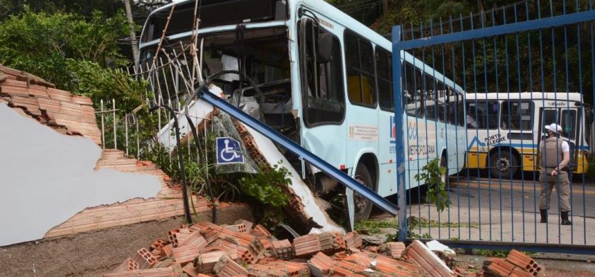 Um ônibus da Metroplan sofreu um acidente, na tarde desta quarta-feira, em Porto Alegre. De acordo com a Empresa Pública de Transporte e Circulação (EPTC), o veículo colidiu em um poste na avenida Professor Oscar Pereira e ficou atravessado no meio da pista. O ônibus chegou a invadir a calçada e atingiu o muro de uma residência. Com o choque no poste, o local ficou sem energia elétrica.