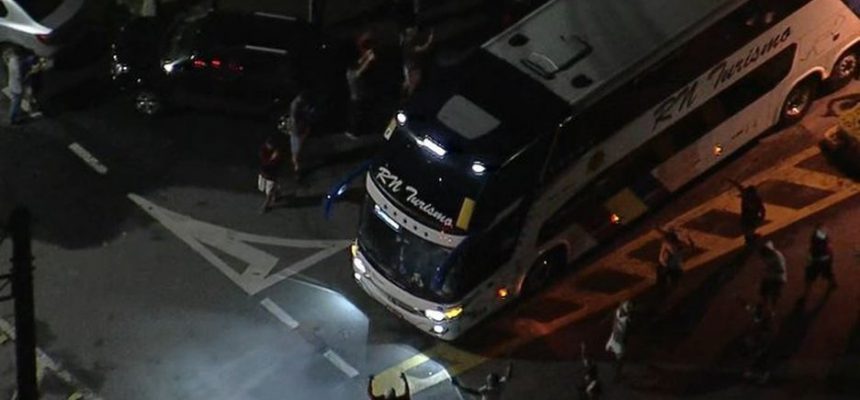 Um ônibus que transportava torcedores do Flamengo foi alvo de ataque a caminho da Neo Química Arena, estádio do primeiro jogo da final da Copa do Brasil entre Corinthians e Flamengo nesta quarta (12).