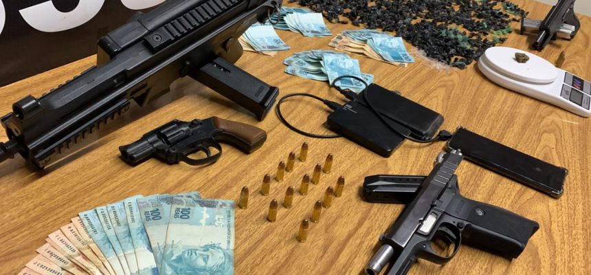 Os policiais apreenderam três pistolas, uma réplica de fuzil, um simulacro de revólver, dinheiro, drogas, celulares e um Porsche Cayenne. O veículo de luxo era utilizado pela mulher do líder da quadrilha, que comandava o bando de dentro do sistema prisional.