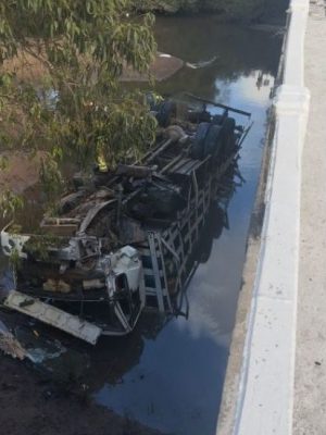 Caminhão carregado de botijões de gás cai de ponte no sul do RS