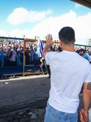Torcida do Grêmio se despede de Suárez com festa no Aeroporto Salgad