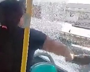 Mulher quebra vidro da janela de ônibus após o filho passar mal devi