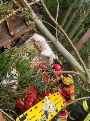 Motorista fica ferido após capotamento de caminhão em Eldorado do Su