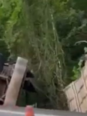 Caminhão carregado de soja tomba na BR-392 em Pelotas