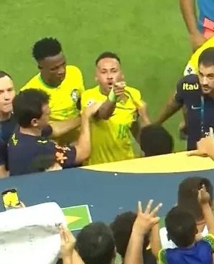 Neymar é atingido por saco de pipoca após empate da Seleção Brasil