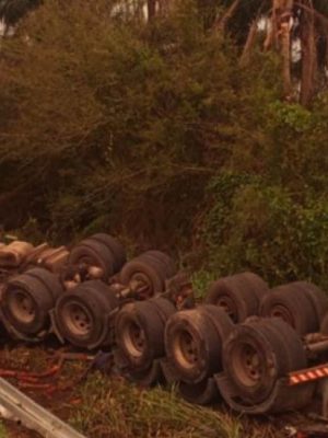 Carreta tomba na BR-116 entre Cristal e Camaquã
